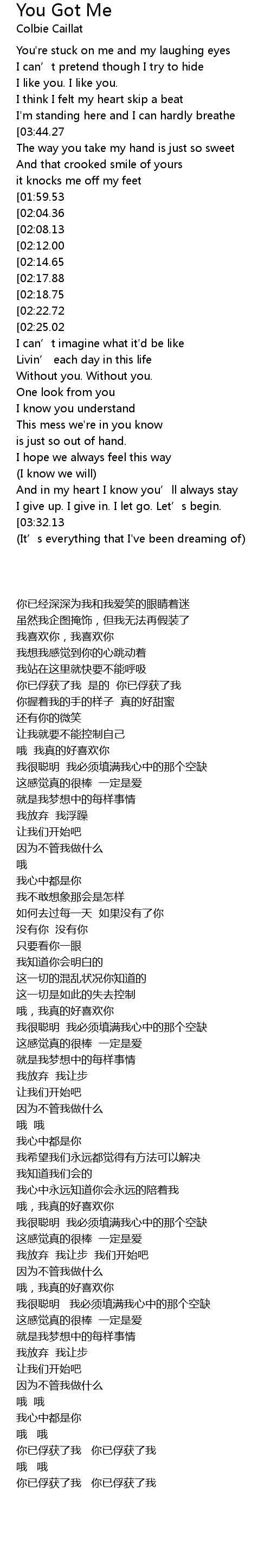 | [00:32.07][03:44.27][03:52.14] | You got me. You got me. |