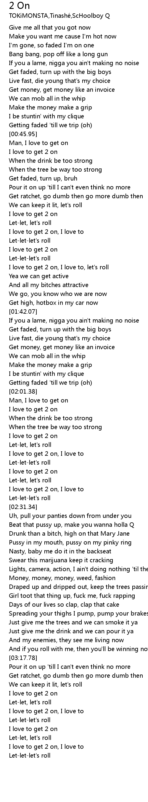 I love to get 2 on, I love to |