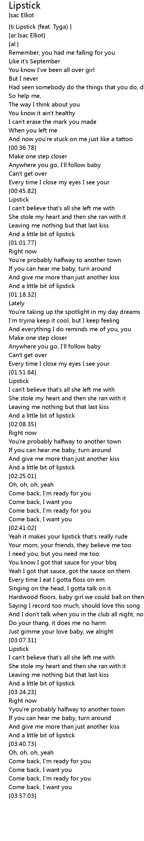 [ti:Lipstick (feat. Tyga) ] |
