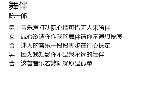 | 男:因为我知影你不是我永远的舞伴 | |