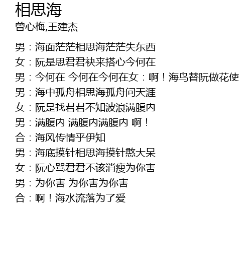 | 男:海中孤舟相思海孤舟问天涯 | |