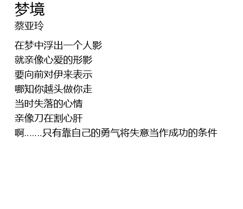 | 啊…….只有靠自己的勇气将失意当作成功的条件 |
