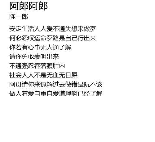 | 阿母请你来谅解过去做错是阮不该 | |