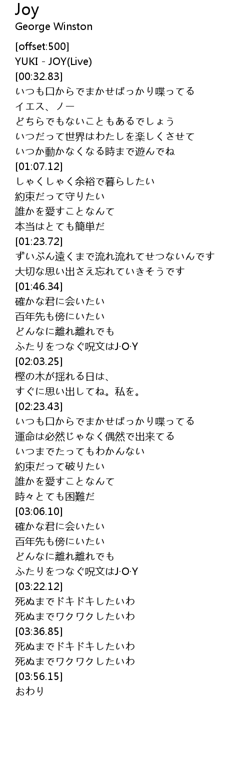 | [00:00.00] | YUKI - JOY(Live) |