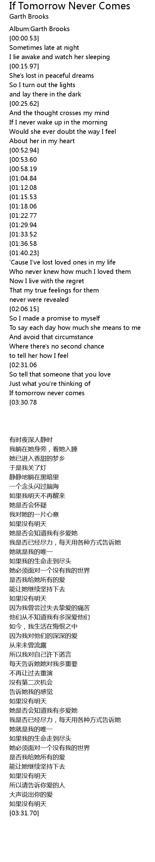 If tomorrow never comes |