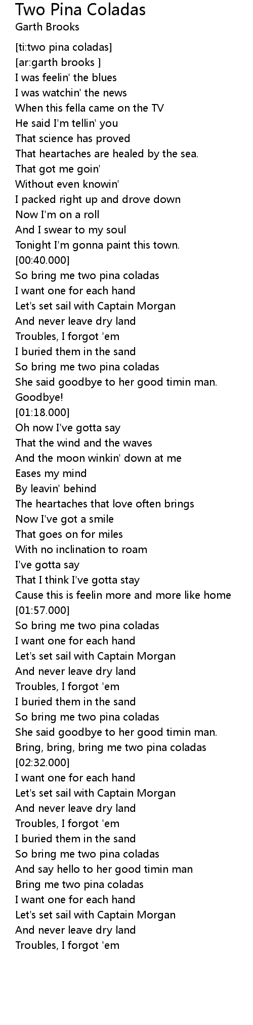 [ti:two pina coladas] |