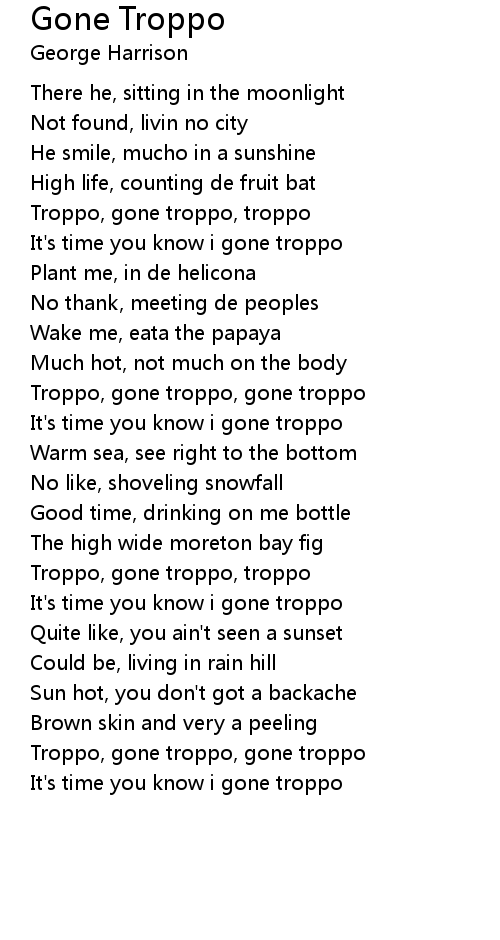 Troppo, gone troppo, gone troppo |