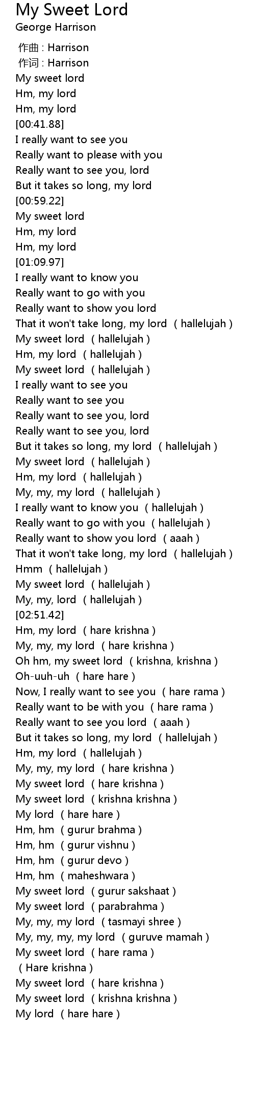 | [03:33.36] | My sweet lord (hare krishna) |