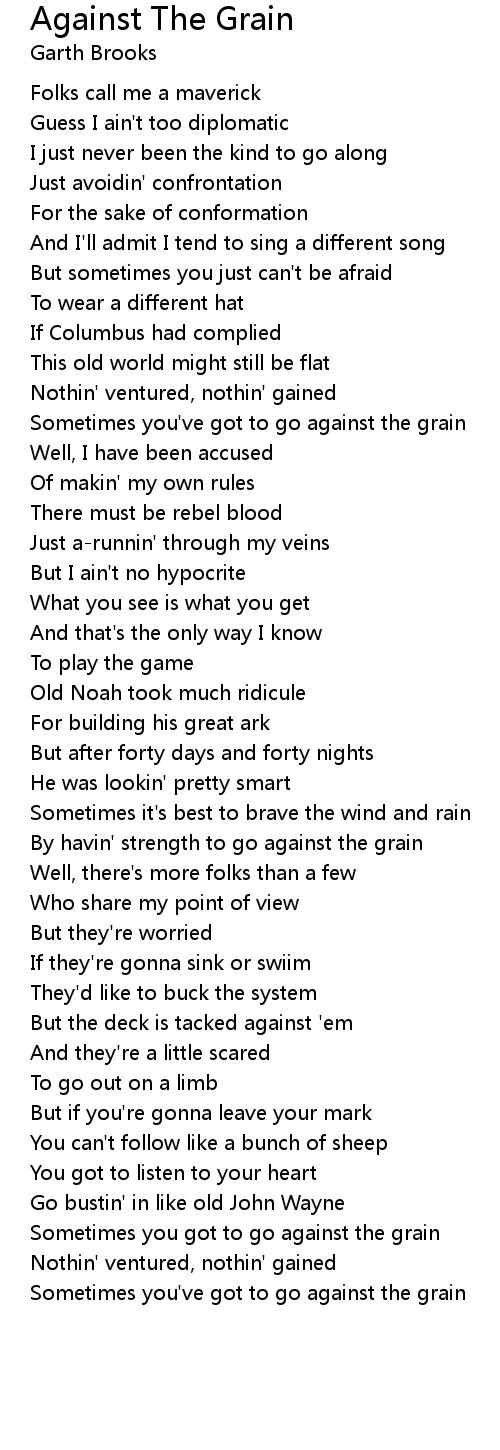 Sometimes you got to go against the grain |