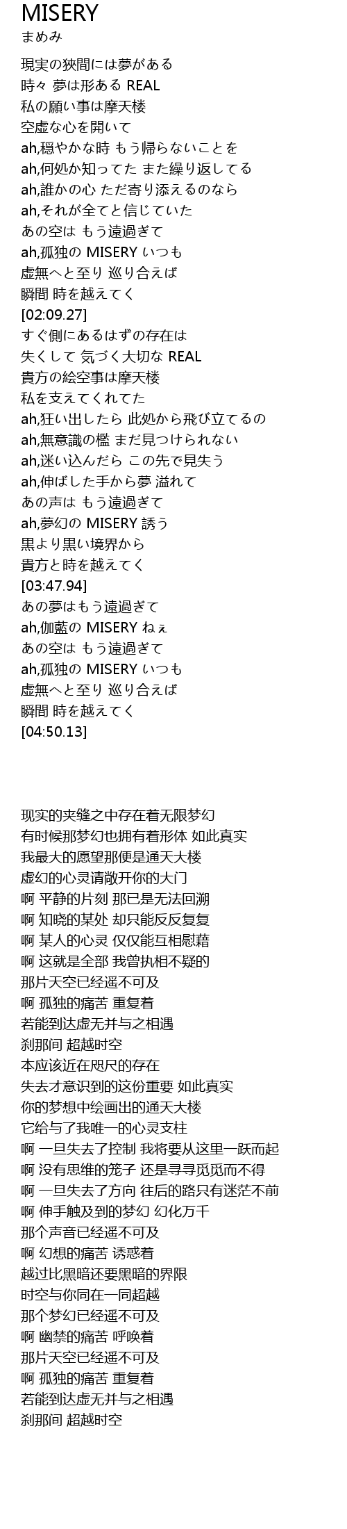| [03:29.95] | ah, mèng huàn MISERY yòu |