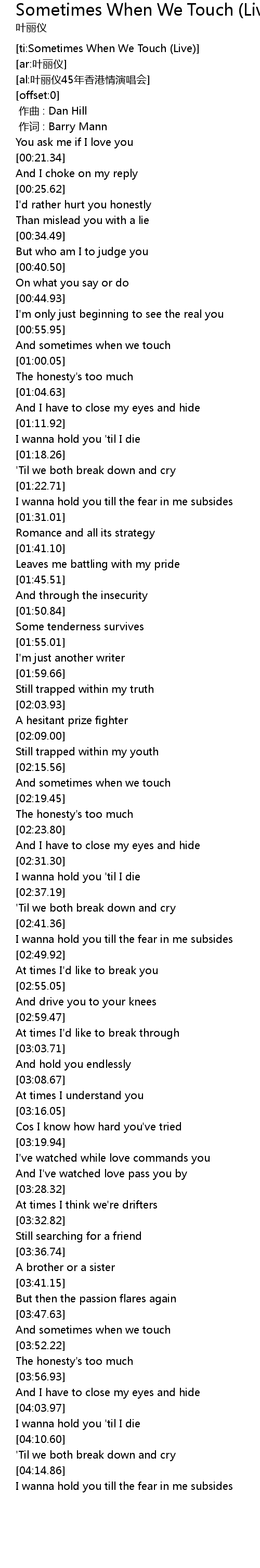 | [ti:Sometimes When We Touch (Live)] | |