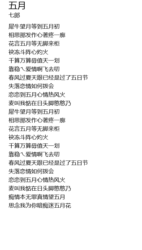 | 痴情本无罪真情望五月 | |