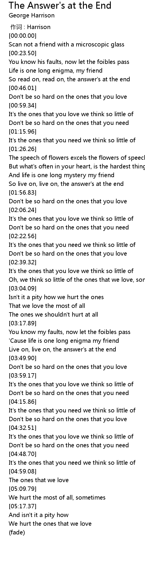 | [01:50.55] | So live on, live on, the answer' s at the end |