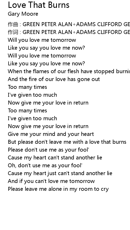 | But please don' t leave me with a love that burns | |