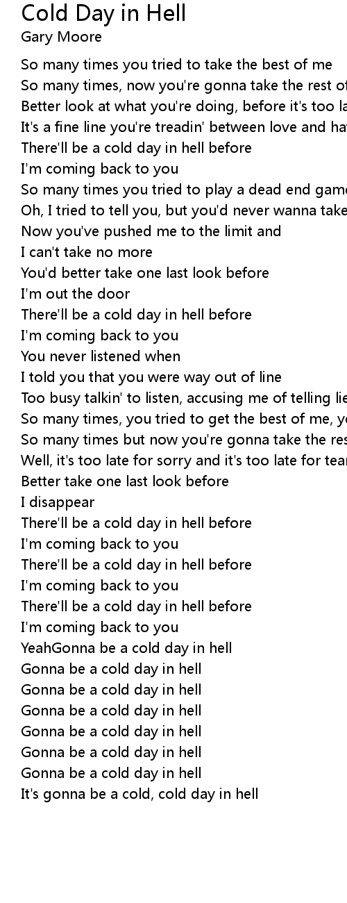 Gonna be a cold day in hell |