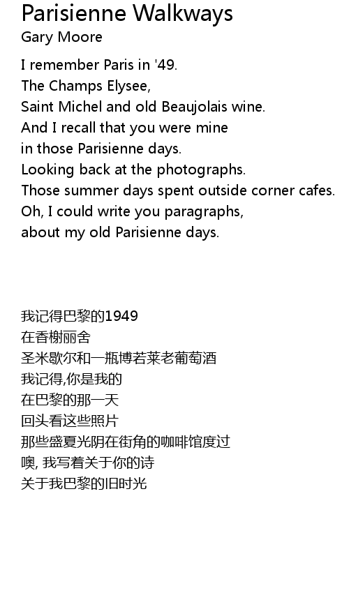 | Song | Parisienne Walkways |
