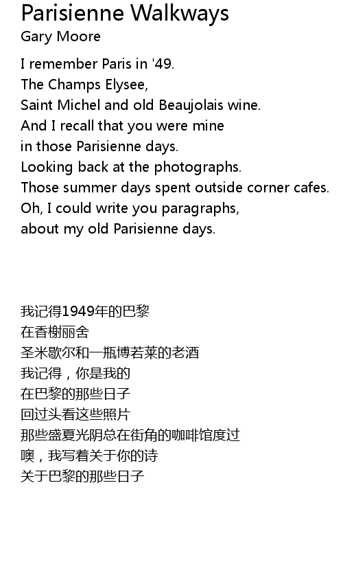 | Song | Parisienne Walkways |