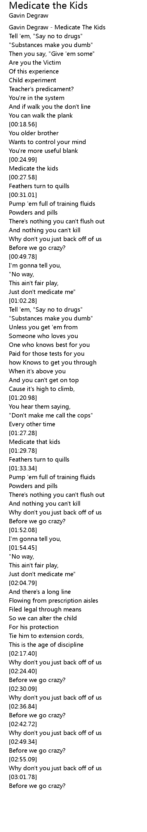 Gavin Degraw - Medicate The Kids |