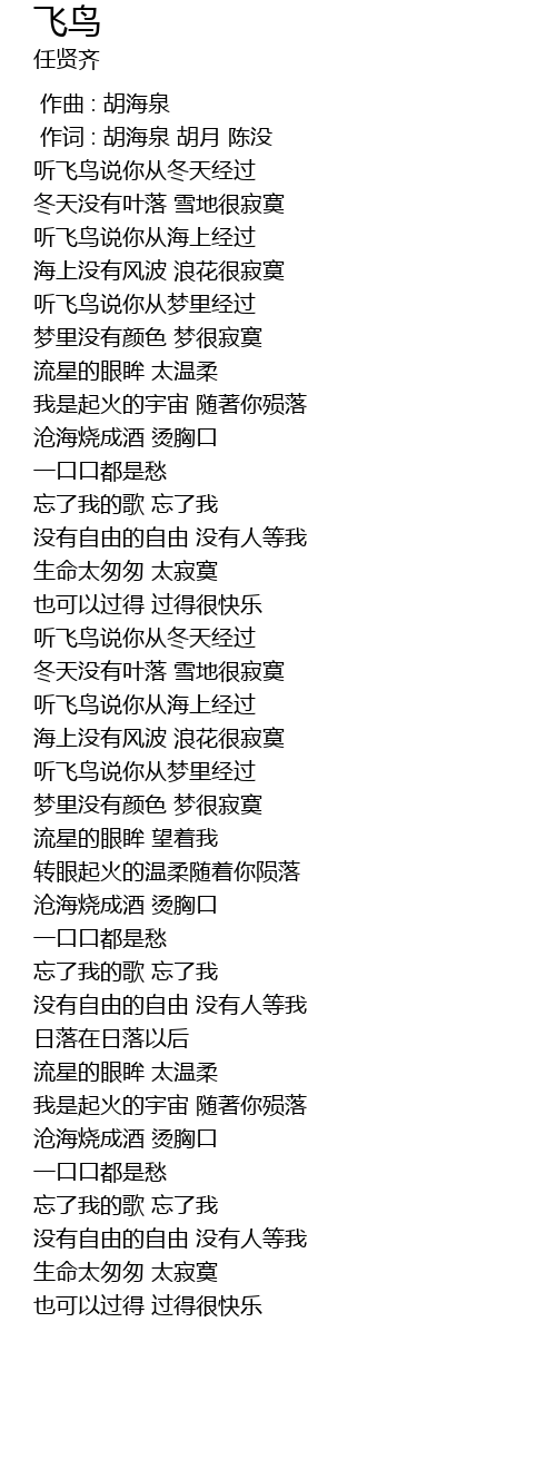 | [00:44.640] | ting fei niao shuo ni cong meng li jing guo |