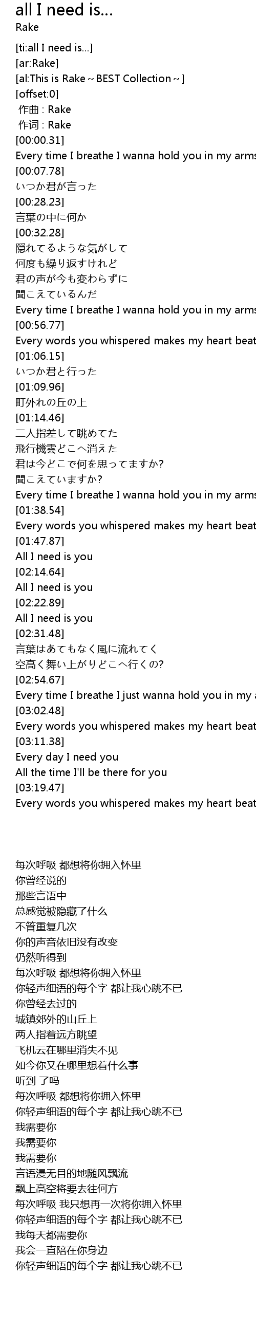 | [02:11.96] | All I need is you |