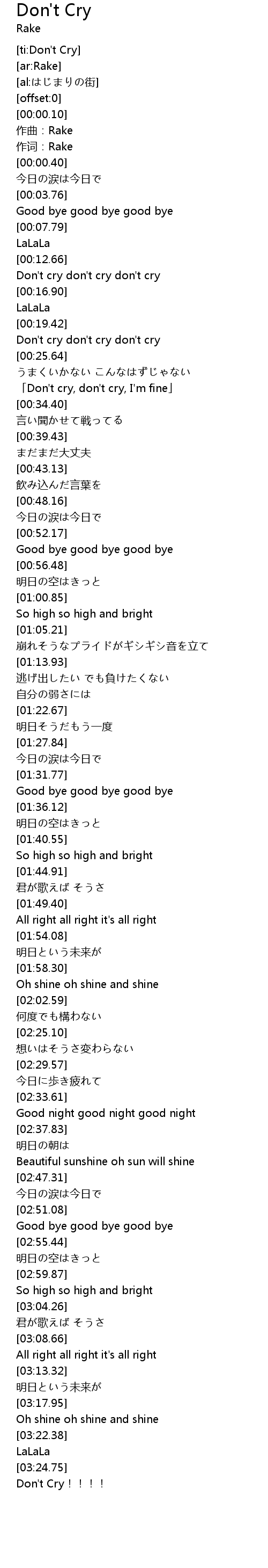 | [00:22.46] | Don' t cry don' t cry don' t cry |