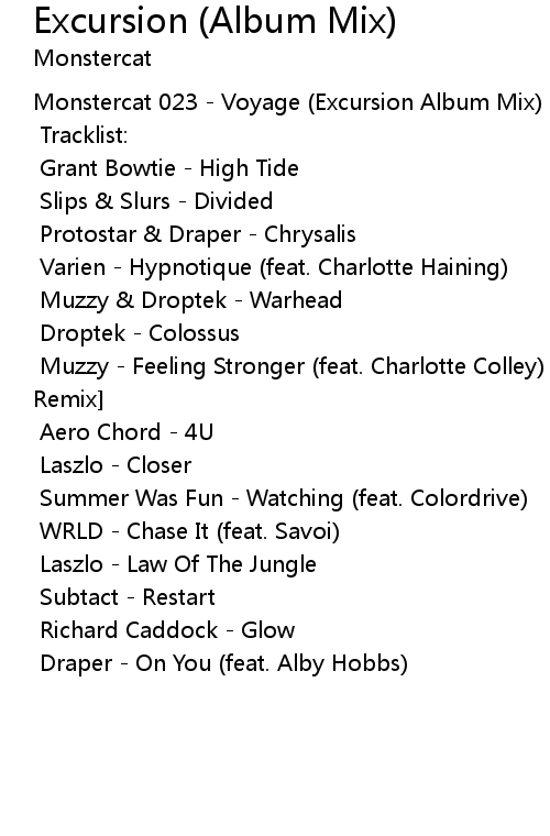 | [00:00.00]Monstercat 023 - Voyage (Excursion Album Mix) [1 Hour of Electronic Music] |