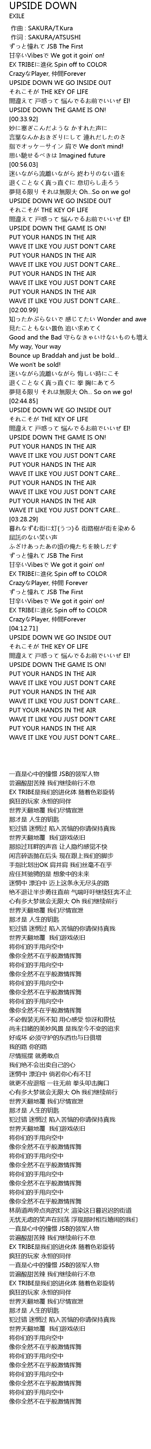 | [04:15.54] | UPSIDE DOWN WE GO INSIDE OUT |