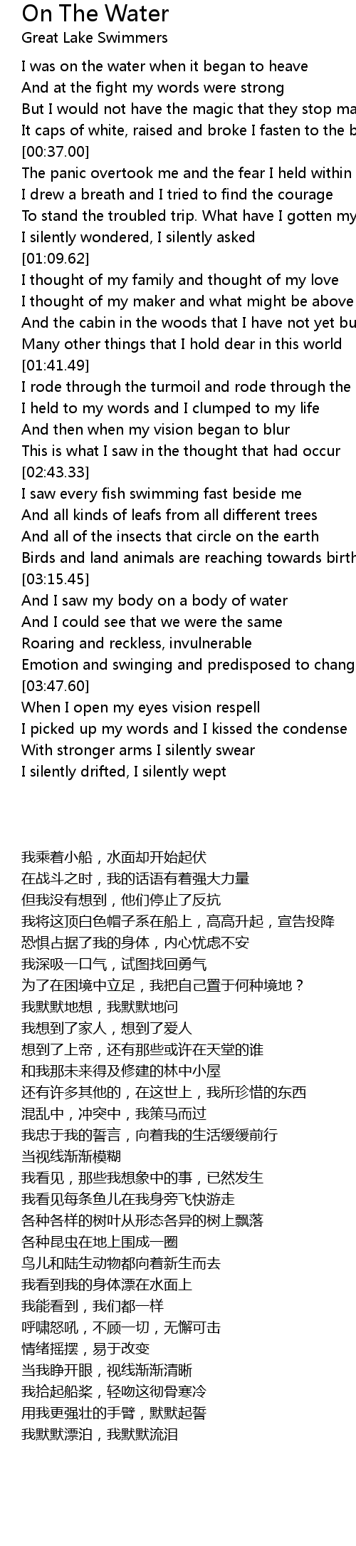 On The Water Lyrics