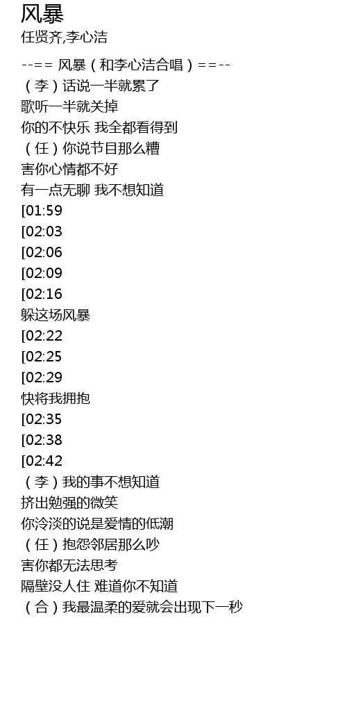 | [00:00] | --== 风暴(和李心洁合唱)==-- |