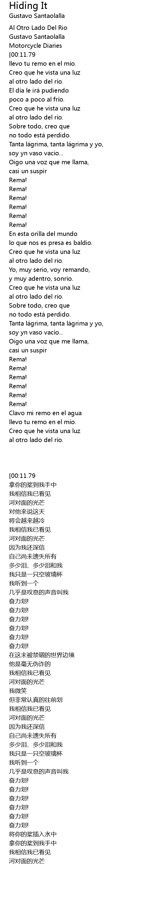| [00:07.48][00:11.79] | Clavo mi remo en el agua |