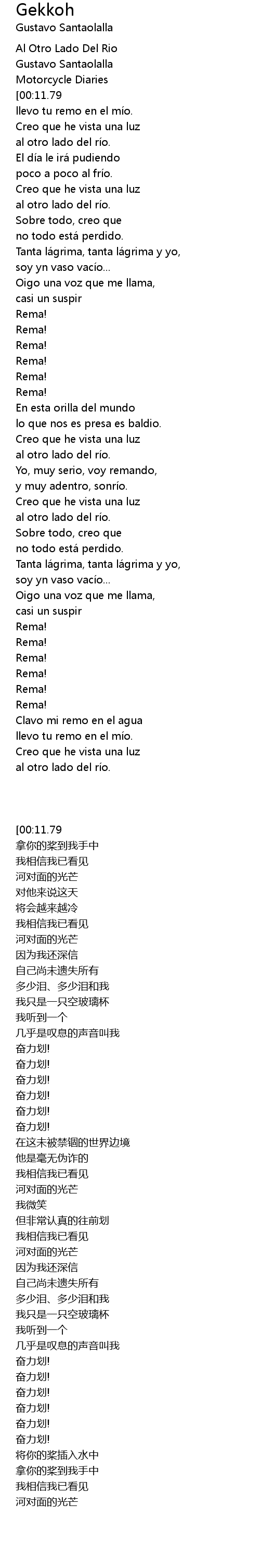 | [00:07.48][00:11.79] | Clavo mi remo en el agua |