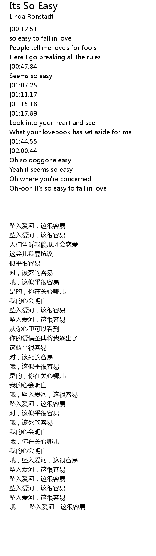 [01:20.38][02:00.44] Oh it's so easy to fall in love