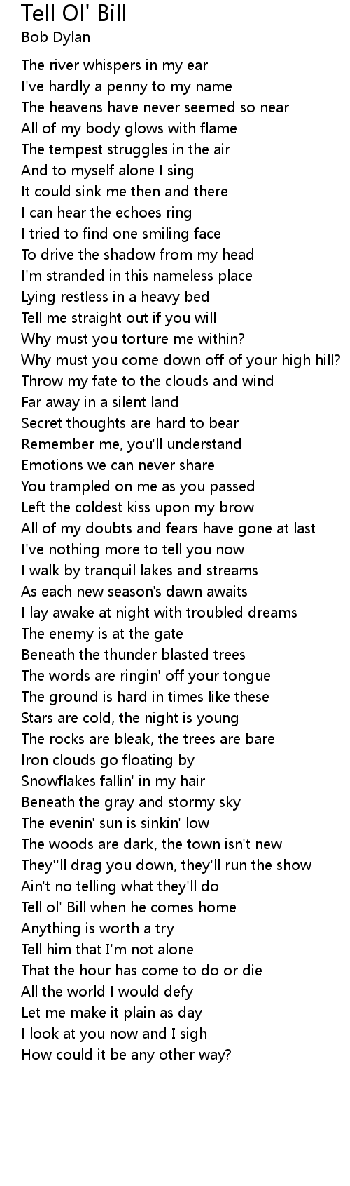 Tell ol' Bill when he comes home |