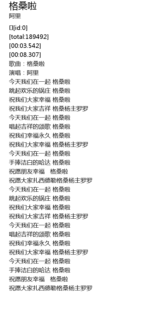 | [02:19.744] | 祝我们大家幸福 格桑杨主罗罗 |