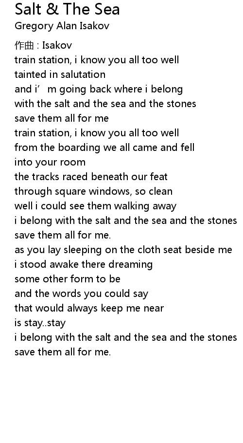 | Song | Salt & The Sea |