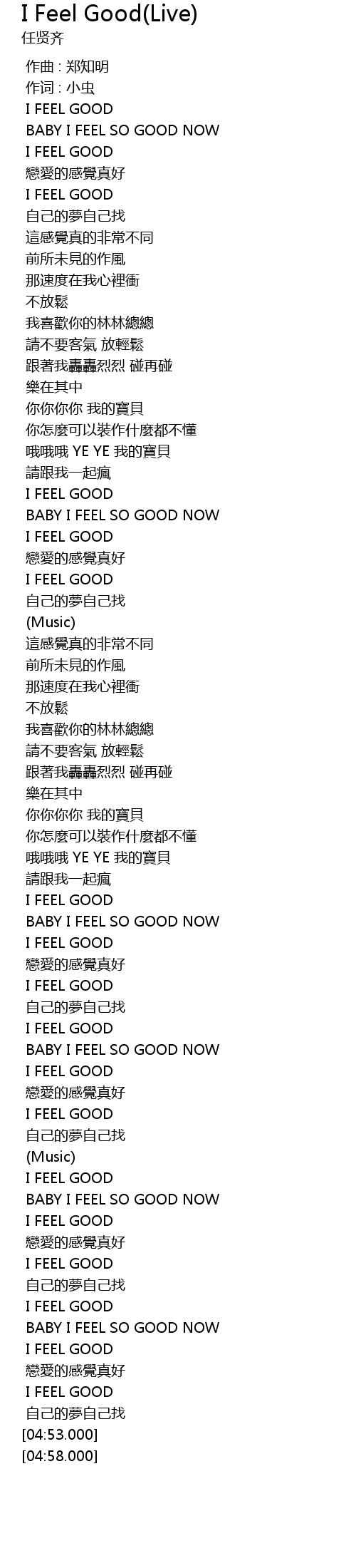 | [04:47.000] | I FEEL GOOD |