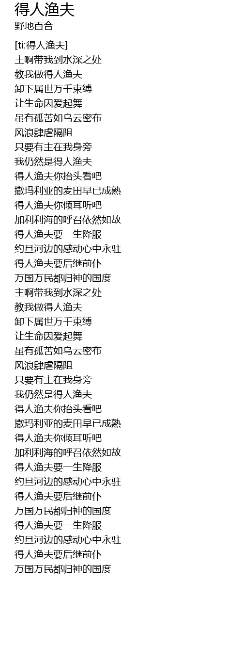 | [01:04.826] | 我仍然是得人渔夫 |