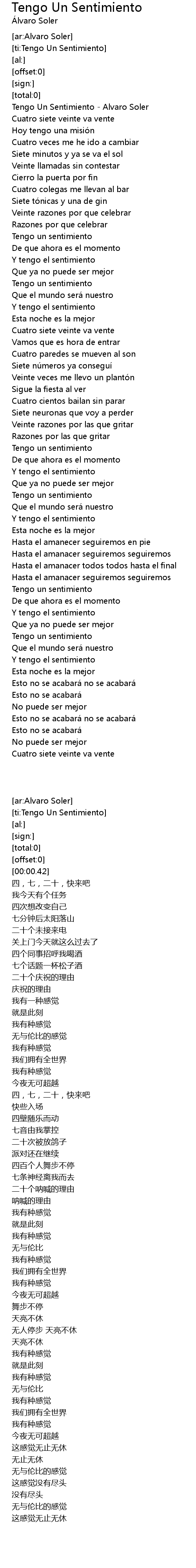 | [00:00.42] | Tengo Un Sentimiento - Alvaro Soler |