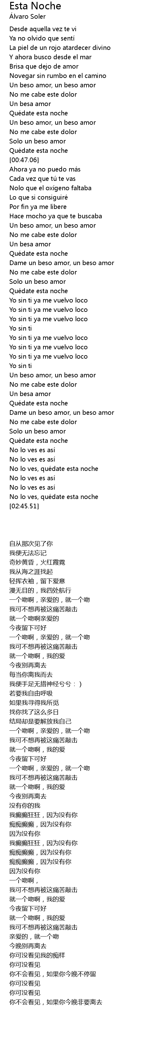 | [01:51.48] | Yo sin ti ya me vuelvo loco |