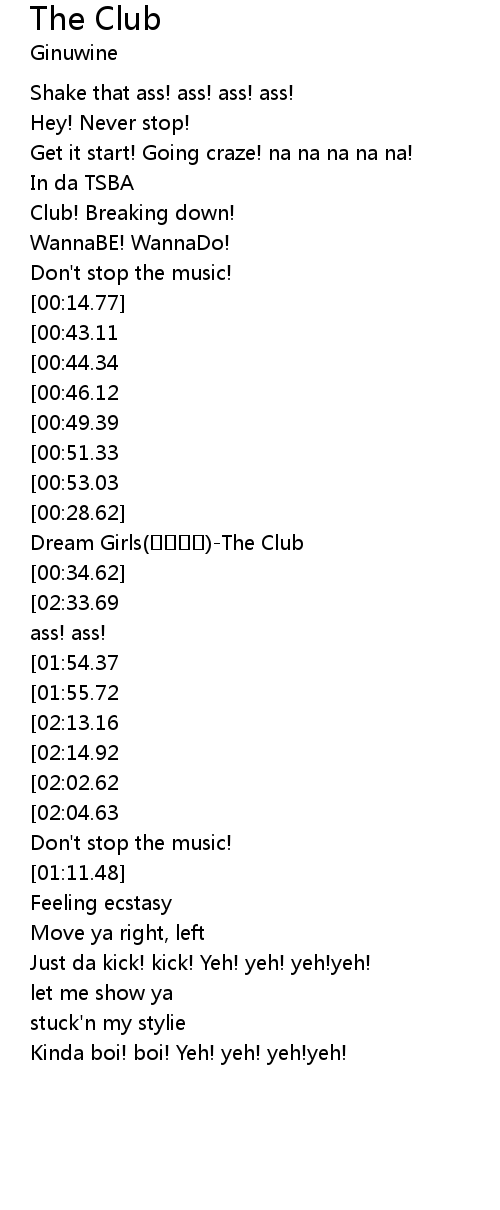 | [02:47.50][02:33.69][02:20.06][02:06.30][01:52.54][00:55.90] | Shake that ass! ass! ass! ass! |
