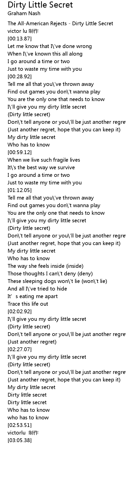 | [02:43.68] | Dirty little secret |