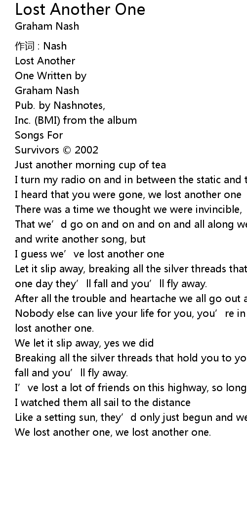 | Nobody else can live your life for you, you' re in it on your own. and we just lost another one. | |