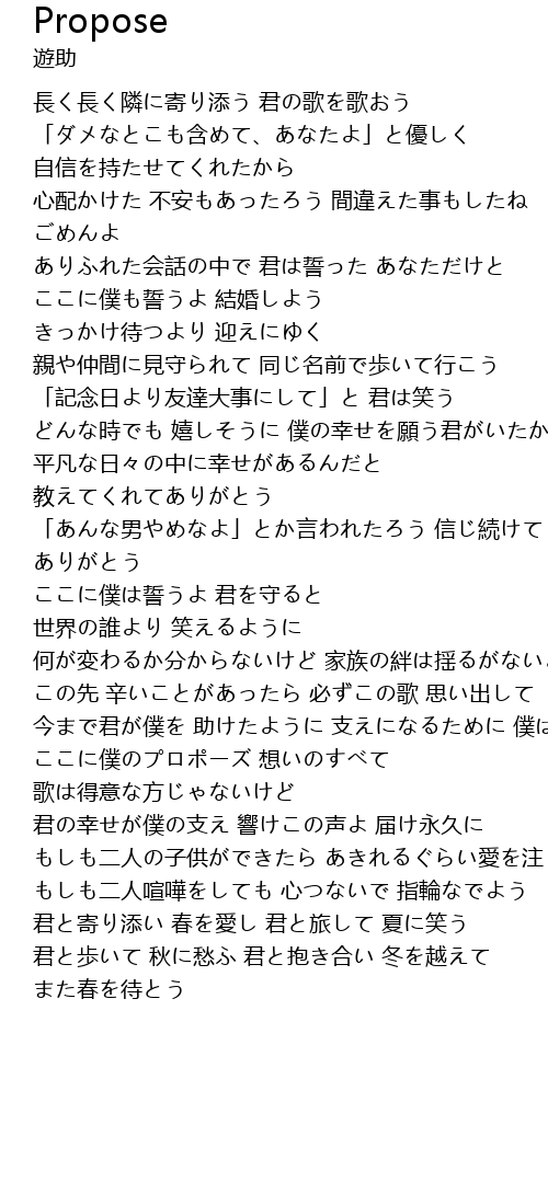 | 君の幸せが僕の支え 響けこの声よ 届け永久に | |