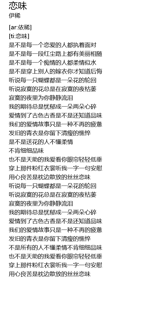 | [00:18.80] | 是不是每一个痴情的人都柔情似水 |
