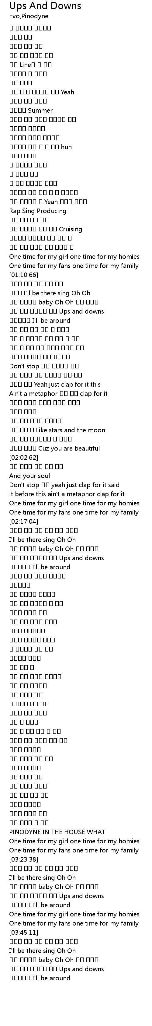 | [01:21.25] | 내가 옆에 있어줄게 너의 Ups and downs |
