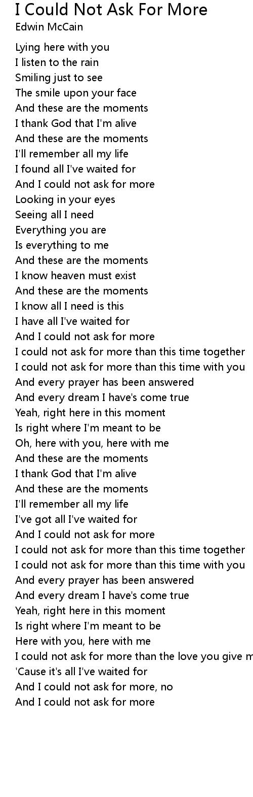 And I could not ask for more, no |