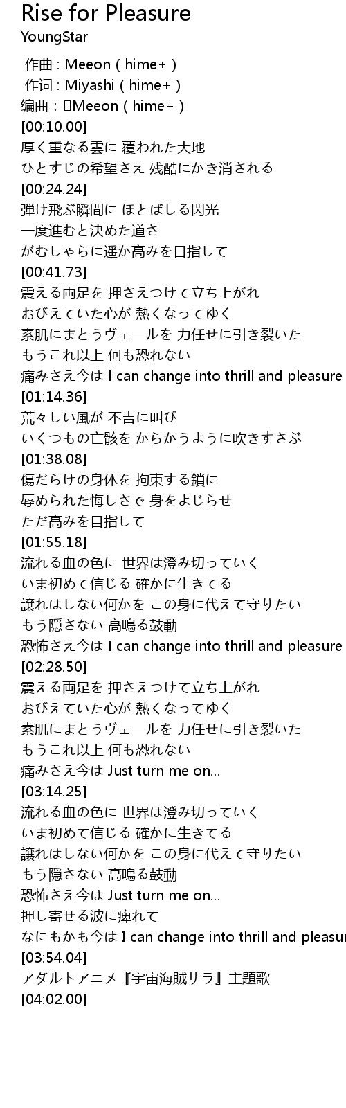 | [02:21.19] | 恐怖さえ今は I can change into thrill and pleasure |