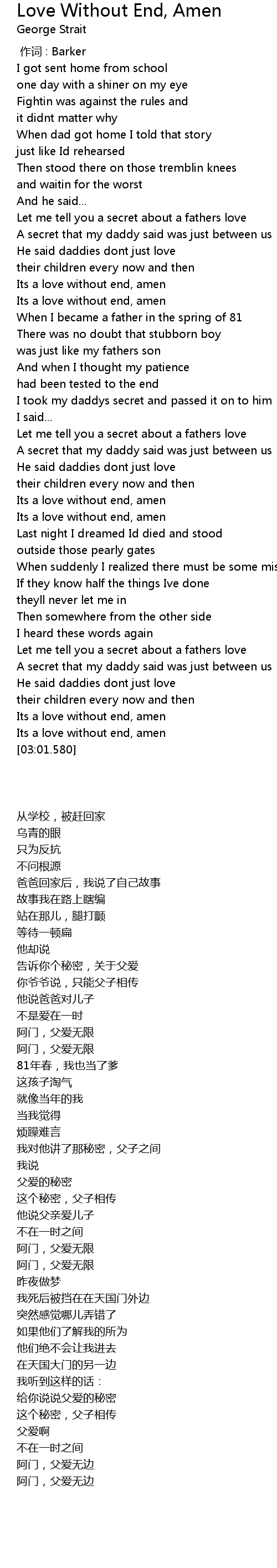 | [00:50.310] | Its a love without end, amen |