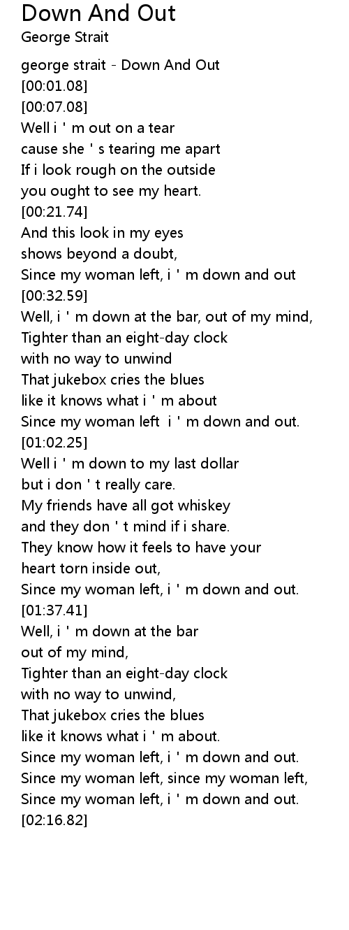 | [00:00.21] | george strait - Down And Out |