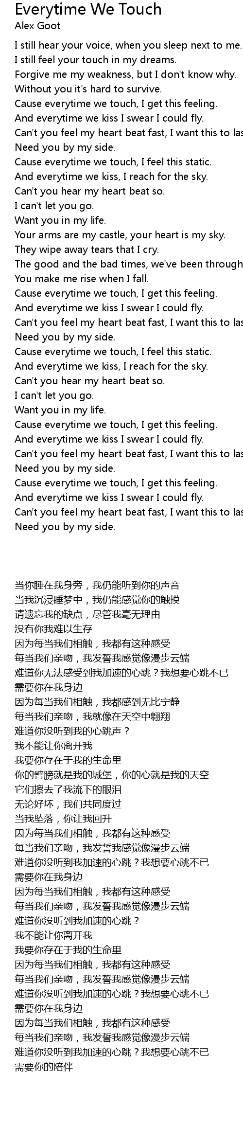 Cause everytime we touch, I get this feeling. |
